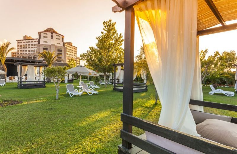 Tesiste 150 kişilik açık restoran, 380 kişilik kapalı restoran(ayrı çocuk bölümü), 2 adet A’la carte restoran (balık ve türk) ayrı çocuk ve kaydırak bölümü bulunan 1 adet açık yüzme havuzu (1400 m2), 1 adet ayrı çocuk yüzme havuzu bulunan kapalı yüzme havuzu(130 m2) , fitness center, masaj, hamam, sauna (wellness), kuaför, alışveriş merkezi , telefon, fax, çamaşırhane, internet köşesi, sağlık hizmetleri, havuz - snack bar, lobby bar, disco bar, pastane,konferans salonu, 1 adet tenis kortu ve ekipmanları, şezlong, şemsiye, minder, masa tenisi, bilardo, squash, lobby kısmında kablosuz internet bağlantısı, animasyon gösterileri, canlı müzik, su jimnastiği, dart, beach voleybol, mini club, tenis ışıklandırması, kasa mevcuttur.