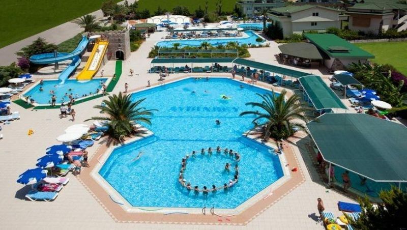 2 adet açık yüzme havuzu(250 m2,650 m2),kaydıraklı aktivite havuzu (120 m2),1 adet ısıtmalı kapalı havuz (58 m2,jakuzili)