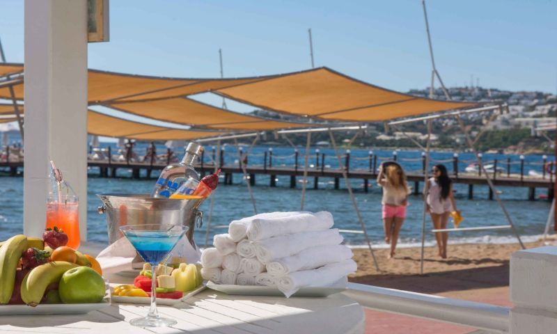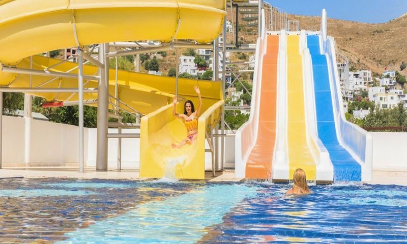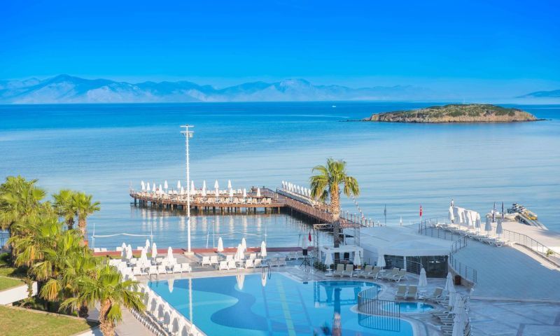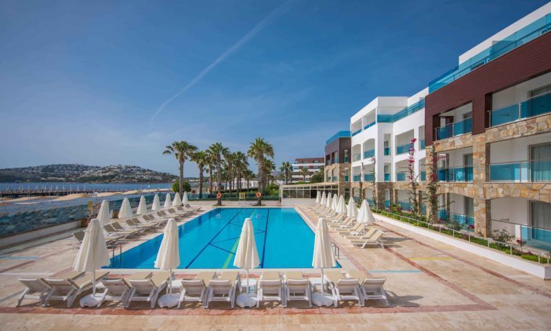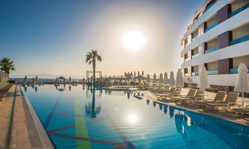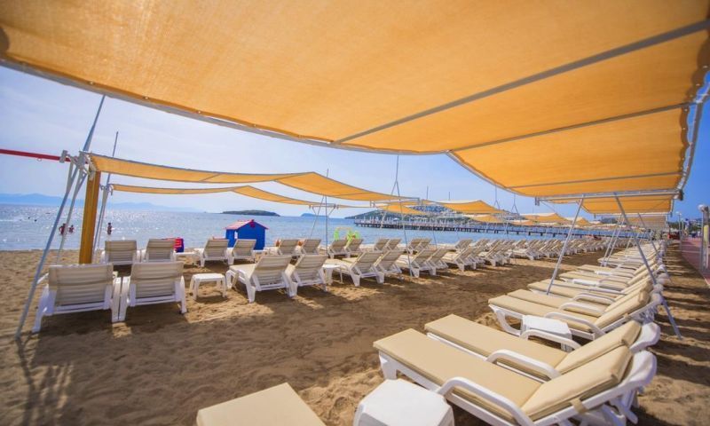 Tesiste 450 m2 Açık Havuz,10 m2 Açık Çocuk Havuzu, 200 m2 Açık Relax Havuz, 155 m2 Kapalı Havuz, 15m2 Kapalı Çocuk Havuzu, 150 m2 2 Bantlı Kaydıraklı Havuz Bulunmaktadır. Denize Sıfır/ Özel Plajı Mevcuttur. İnce Kumdur. Şezlong, Şemsiye Ücretsizdir. Plaj & Havuz Havlusu Havlu Kartı ile Temin Edilir.