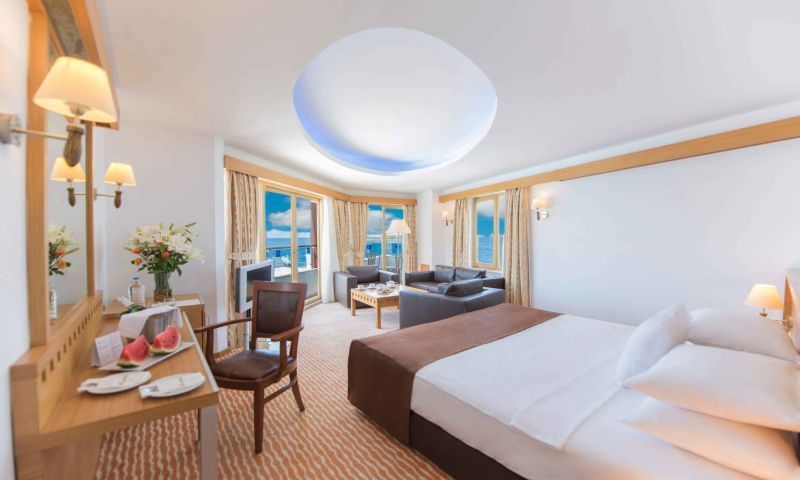 Superior Odalar: 45-50 m2 French / Twin Yatak ve Sofa Bed. 1 Banyo (Küvet / Wc ). Minimum 2 Maksimum 4 Kişi Kapasitelidir. Balkonlu ve Halı Zeminlidir.