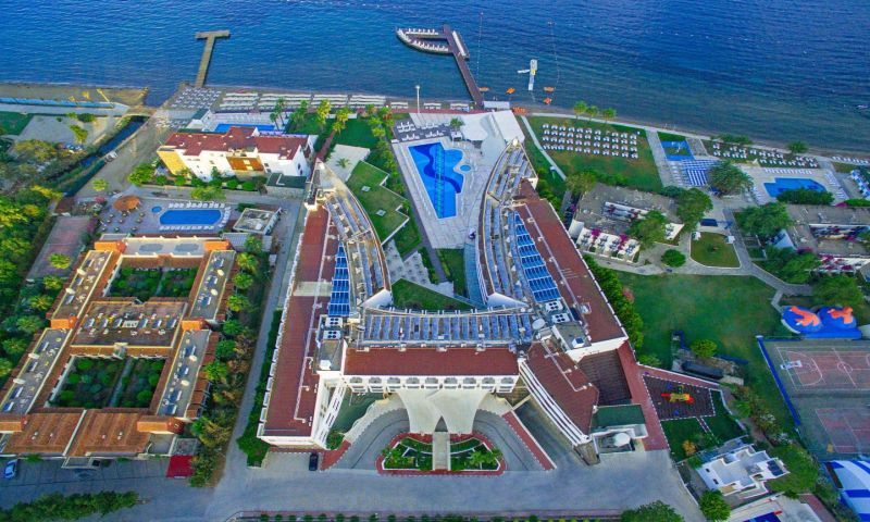 20,000 M2 Alan Üzerine Kurulu Olan Tesiste 1 Adet Acık Havuz (450 M2), 1 Adet Relax Havuz (200 M2), 2 Bant Kaydıraklı Havuz (150 M2), 1 Adet Ana Restaurant, 2 Adet A La Acarte Restaurant, Spa & Welness, Fıtness Center, Turk Hamamı, Sauna, Buhar Odası, Masaj, Vücut Bakımları, Kuaför, Doktor & Hemşire, Alışveriş Merkezi, Çamaşırhane, Fotoğraf Servisi, Toplantı Salonu, Açık Otopark Hızmetlerı Sunulmaktadır.