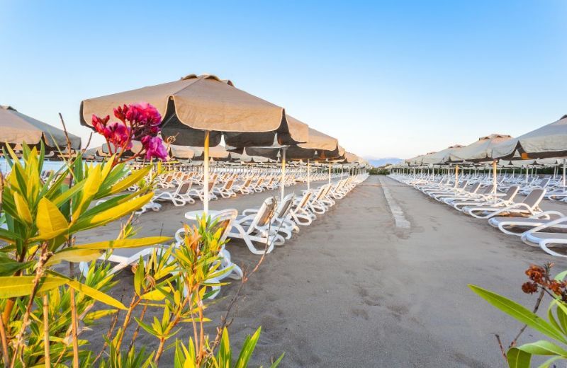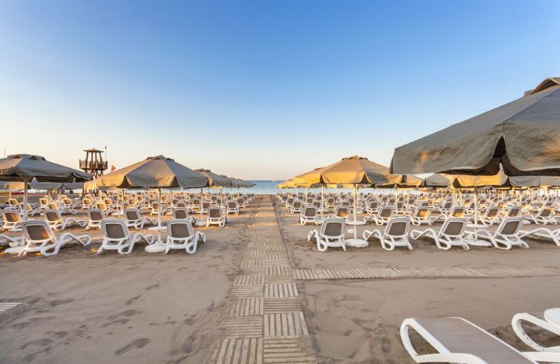 Kum olan plaj içerisinde ücretsiz şemsiye, şezlong, havlu (girişte ücretsiz, değişim ücretli)sunulmaktadır.